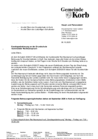 Bürgermeisteramt Postfach 11 20 71398 Korb - An alle Eltern der Grundschulen in Korb An alle Eltern der zukünftigen Schulkinder Haupt- und Personalamt Ansprechpartner: Caren Lederer…